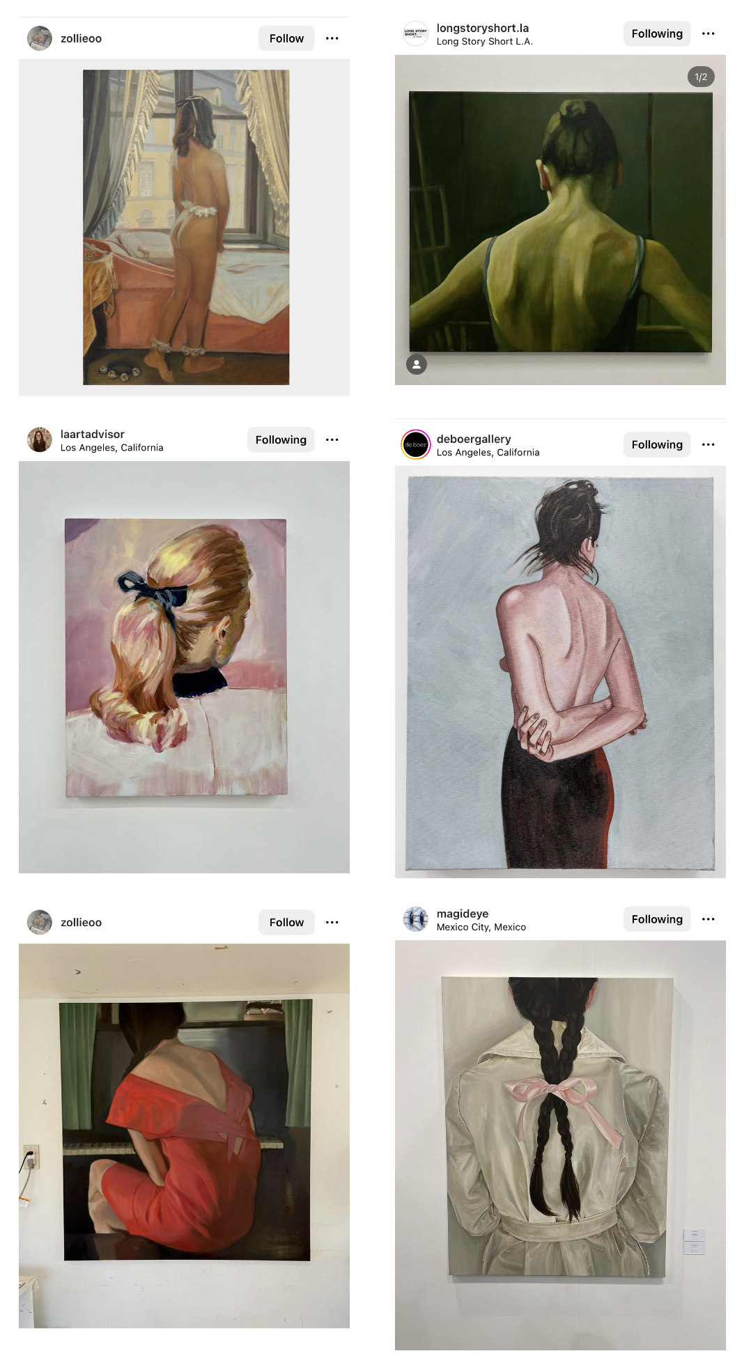 P.P.S. Related to the above, I also found trendy, zeitgeisty things that happen like all the paintings of the backs of young women with their hair tied back, in a bow or in braids. Please enjoy.